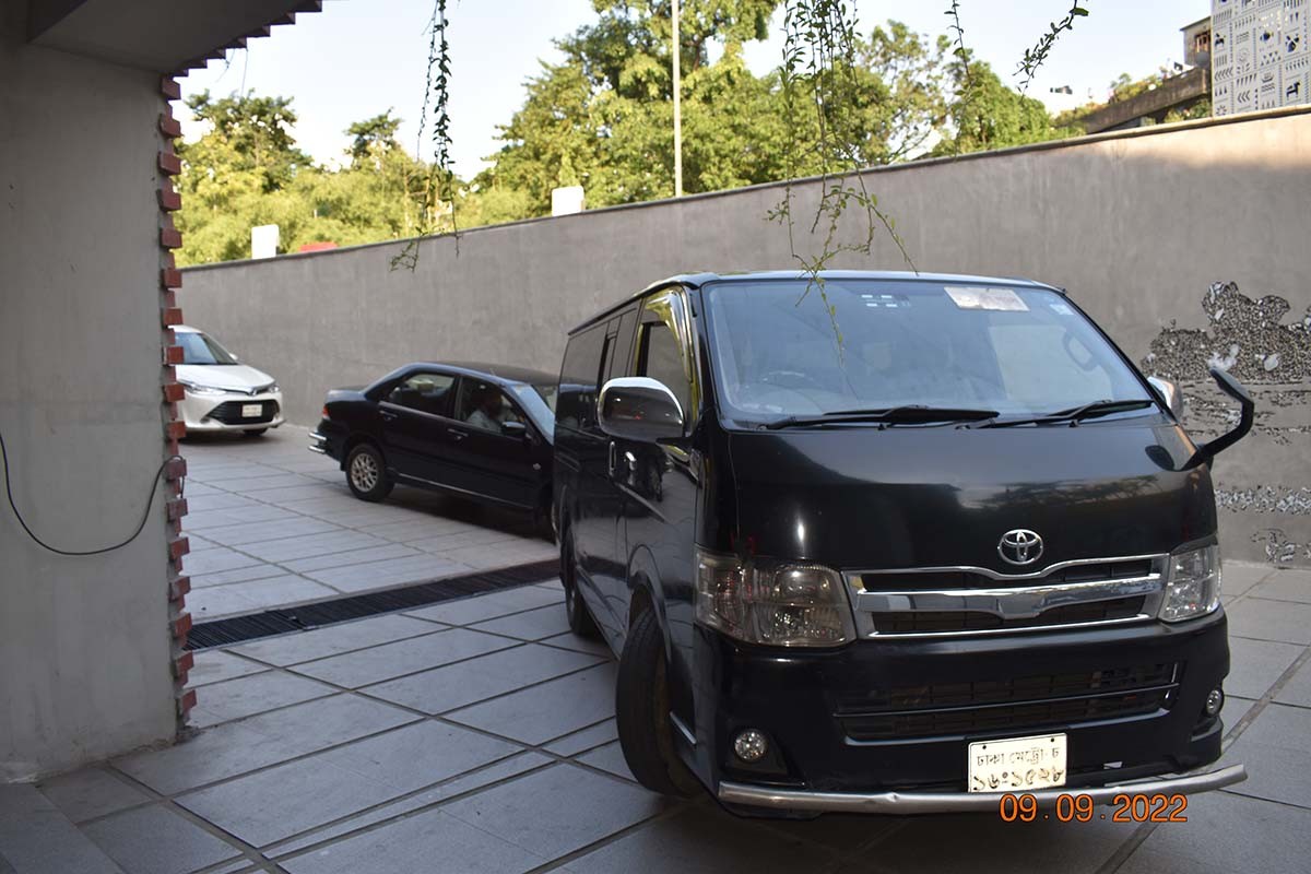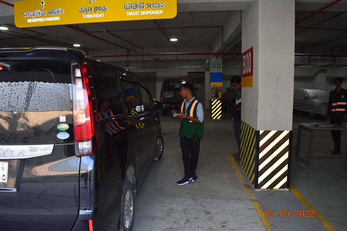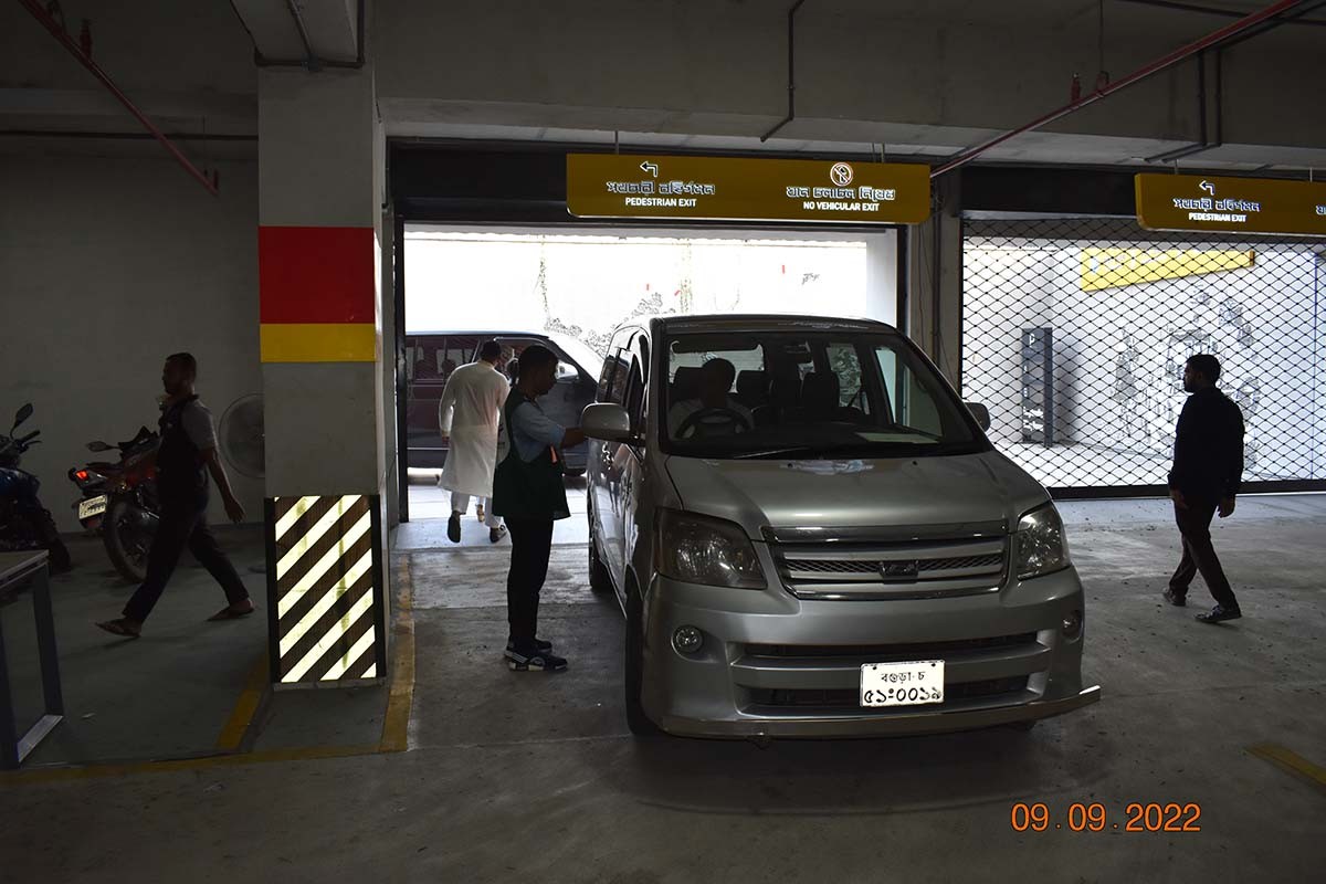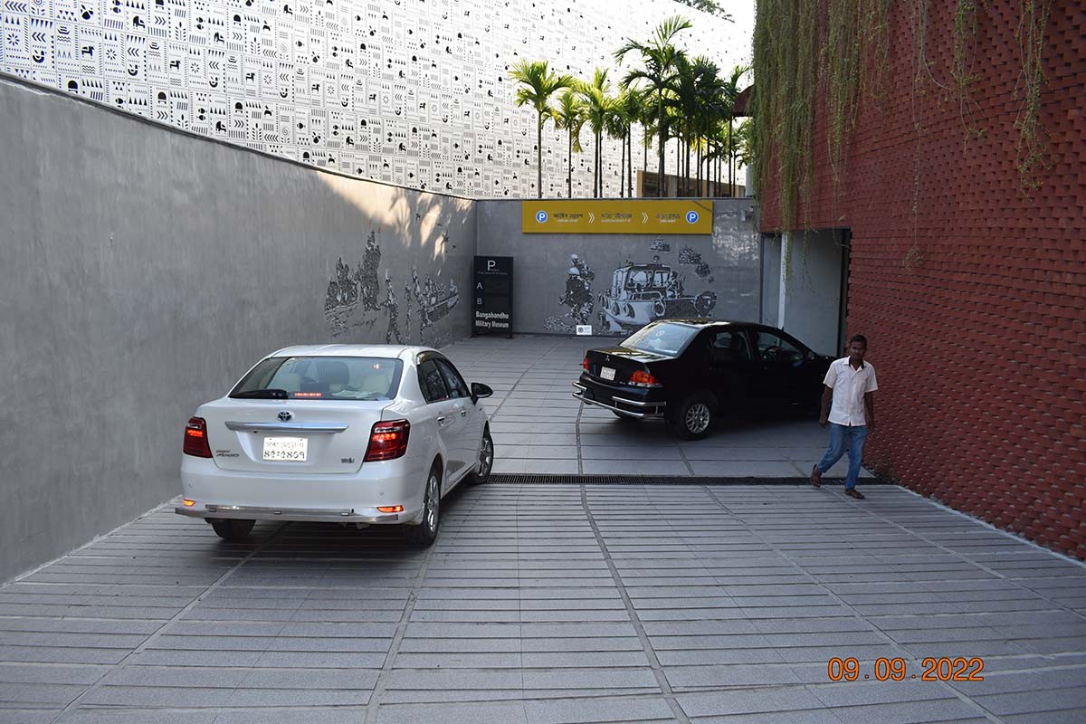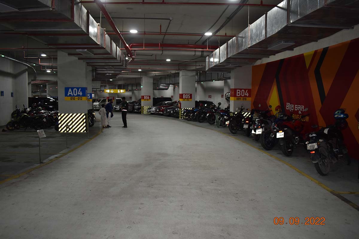 | The parking area has three layered loops based unidirectional parking system with a capacity to accommodate 485 vehicles (Car/Jeep/Microbus/ Motorcycle/Bi-Cycle) at a time in the basement floor. To ensure easy access to a large group of visitors, a dedicated bus dropping bay and parking facility is also available. | |